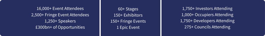Bringing 16,000+ professionals from national and local government, investors, developers, end-users and the wider built environment industry together – it’s the place where conversations start to drive investment and regeneration in our regions.