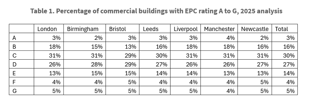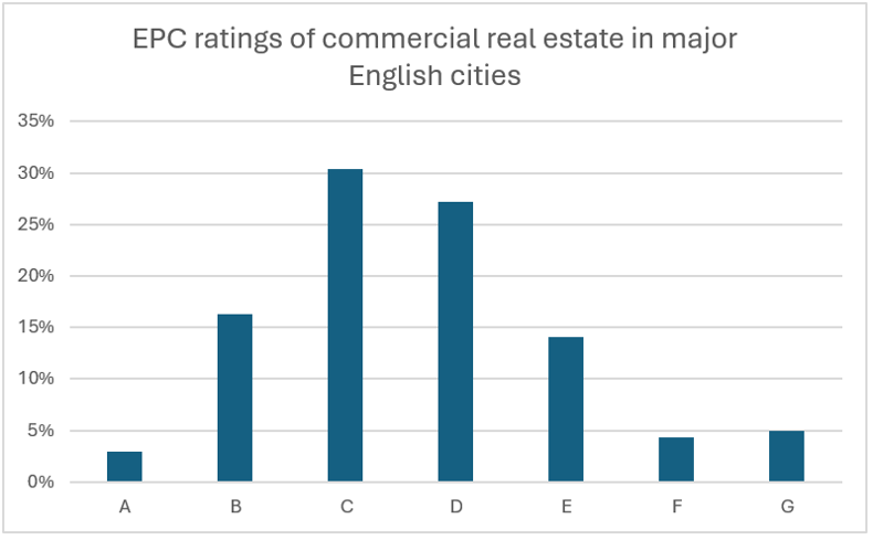 - 81% of commercial buildings in major English cities below EPC B